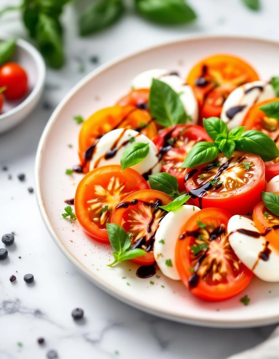 - Sprinkle the torn basil leaves evenly over the tomatoes and mozzarella, allowing their fragrant oils to infuse the dish.