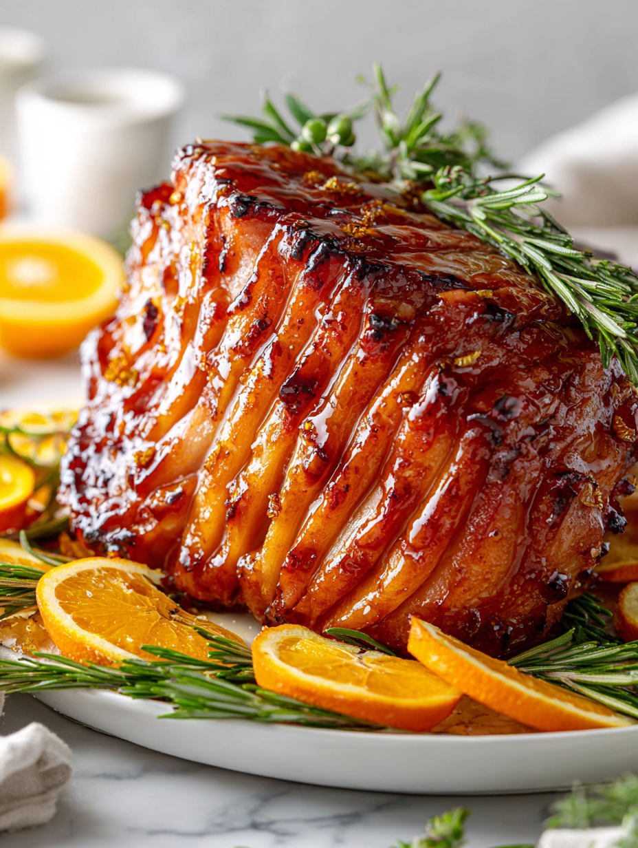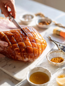 - Carve the ham into slices, serve with extra glaze on the side, and enjoy the tender, flavorful, and beautifully glazed centerpiece that’s perfect for your holiday table.