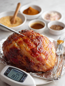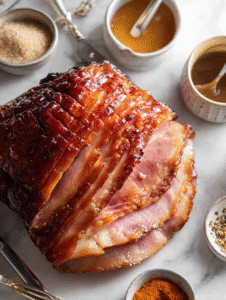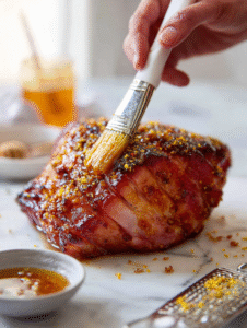 - Baking Sheet: To hold the ham while glazing and roasting, with space for drippings and caramelization.
