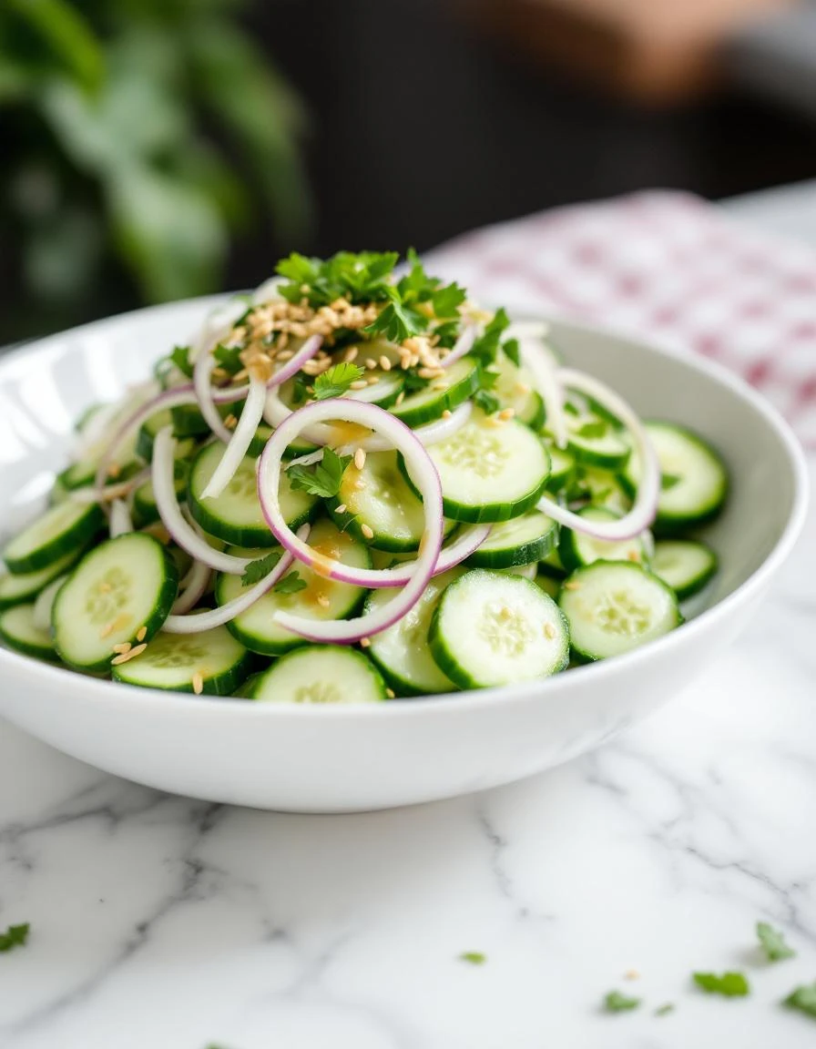 - Give the salad a quick toss before serving to refresh the flavors, then transfer to a serving dish. The cucumbers should be crisp yet tender, glistening with the flavorful marinade.