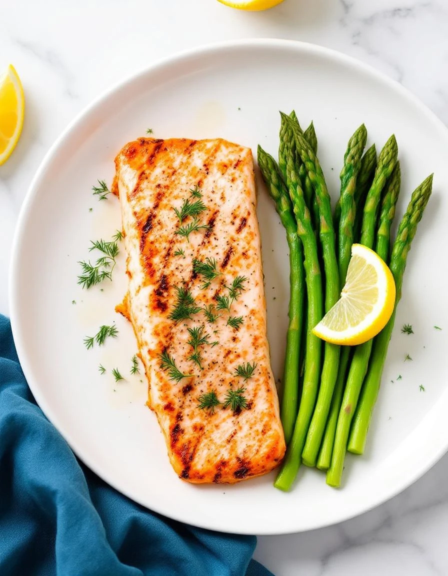 - Squeeze fresh lemon juice over the grilled salmon and asparagus, then sprinkle with chopped dill or parsley for a fresh aroma and flavor.