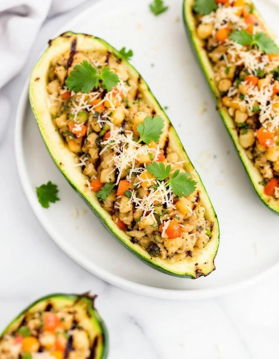 - Carefully fill each zucchini shell with the mixture, pressing lightly to pack the filling without overflowing.