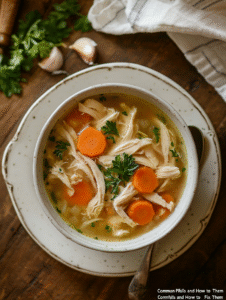 - Fresh herbs (thyme, parsley): Layered and herbal, they lift the broth. Dried herbs can be used but add later.