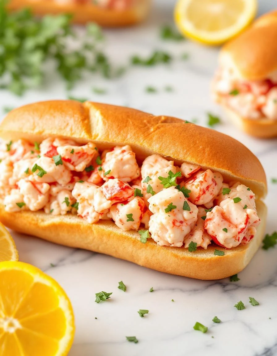 The gentle squeeze of lemon releasing a bright, zesty aroma as you assemble the roll, contrasting with the rich, tender lobster meat—each press awakens the flavors and brings everything together with a satisfying, audible squish.