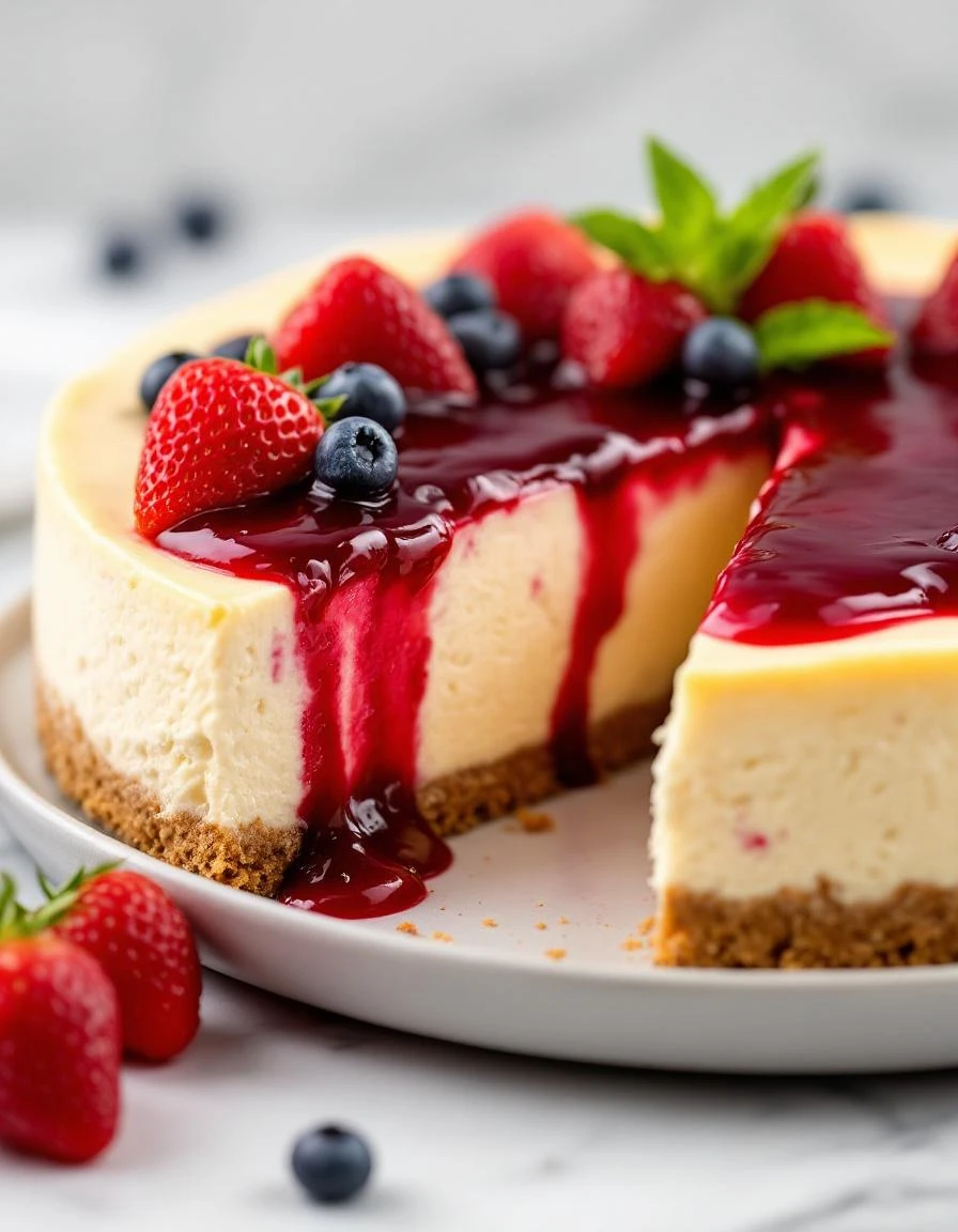 - Once set, remove the cheesecake from the fridge, run a knife around the edges, and carefully release the springform pan. Slice with a sharp knife and serve chilled.