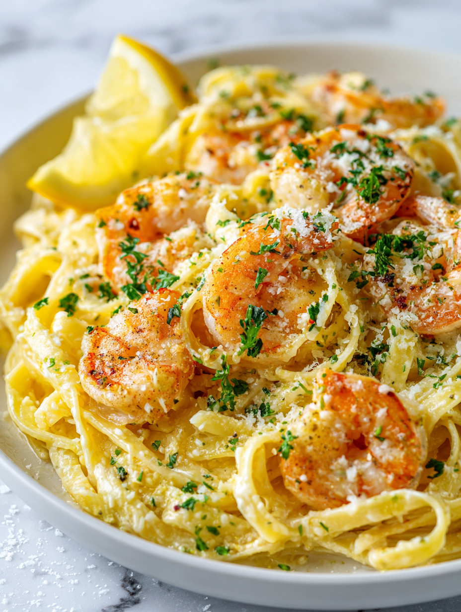 Shrimp Fettuccine Alfredo with Garlic Butter