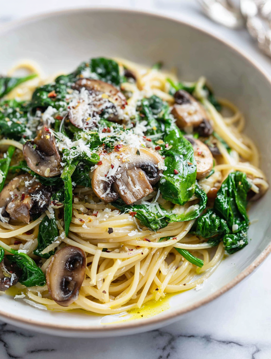 • This recipe was born out of a busy Saturday where I wanted something quick but satisfying, and I remembered a cozy trattoria I visited years ago, where the earthy aroma of mushrooms and the vibrant green of fresh spinach kept lingering on my mind. That dish was simple, honest, and made me realize how a few quality ingredients can turn into something greater with just a little patience and timing.