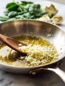 - Heat a large skillet over medium heat and add a drizzle of olive oil. Sauté the minced garlic until fragrant, about 30 seconds to 1 minute, releasing a warm, aromatic scent.