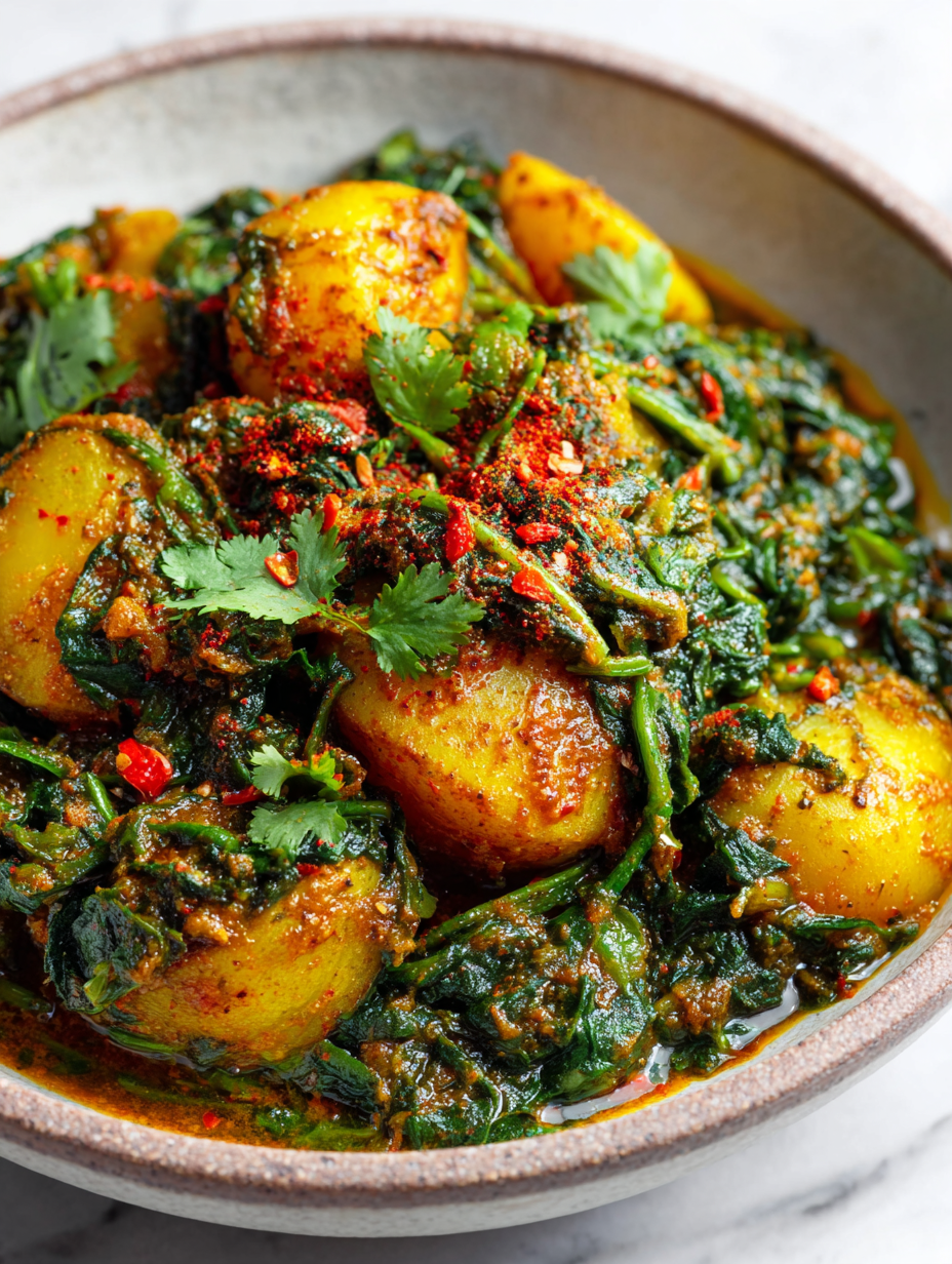 • This recipe sprouted from a lazy Saturday afternoon when I rummaged through the fridge and found a bag of spinach wilting in the crisper. I didn’t want to waste it, so I threw it into a quick curry with potatoes I had boiling on the stove. That burst of vibrant green and earthy warmth reminded me how simple ingredients can turn into something unexpectedly satisfying.