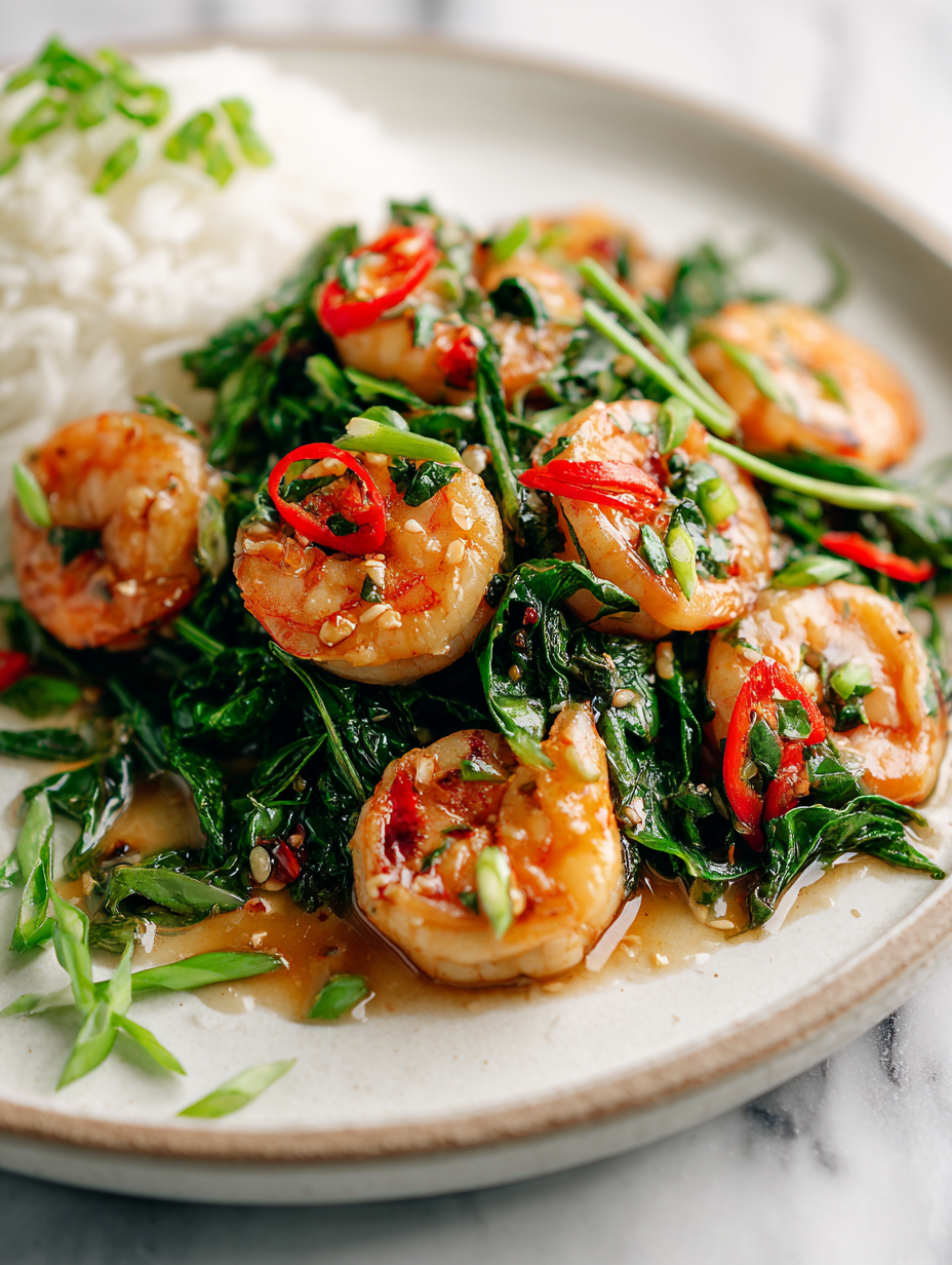 Cooking this dish always takes me back to a trip I took to Thailand, where the markets buzzed with the scent of fresh herbs and sizzling seafood. I remember standing by a stall, watching a cook toss shrimp with basil, garlic, and chili, the aroma wrapping around me like a warm blanket. That moment of pure sensory joy is what I chase every time I make this at home, trying to recreate that street market magic with just a few simple ingredients. It’s honest, unpolished food—fast, fragrant, and real—that connects me to a place I love.